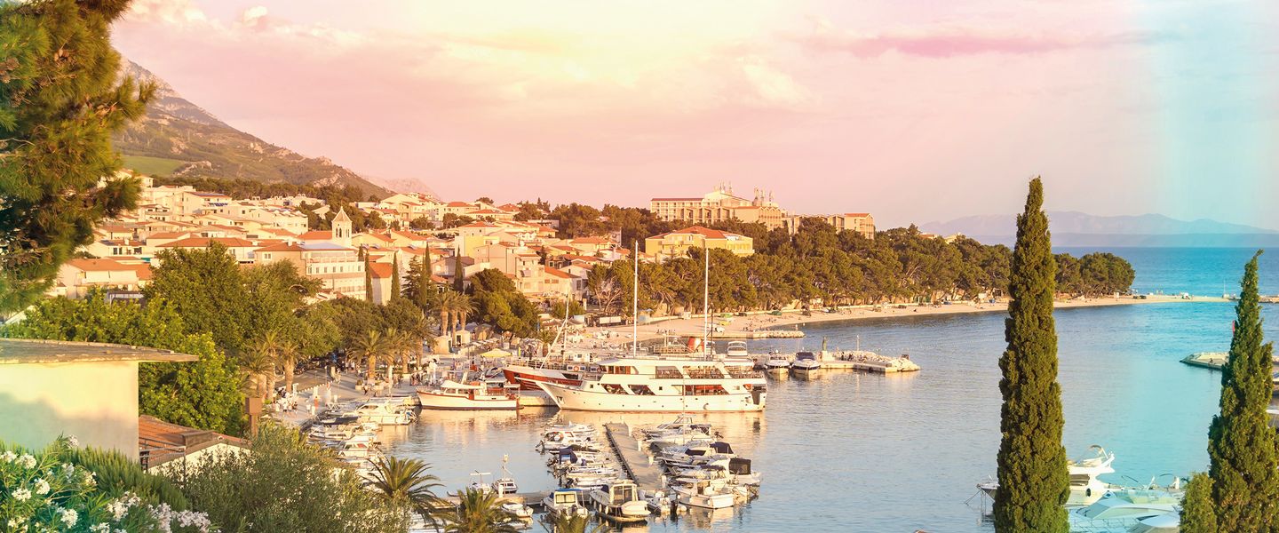 Baška Voda ist eine malerische Küstenstadt in Kroatien, die sich in der Region Dalmatien befindet. Sie liegt an der Adriaküste, etwa 10 Kilometer nordwestlich von Makarska und ist Teil der Makarska Riviera. Baška Voda ist berühmt für ihre schönen Strände, das kristallklare Wasser und die beeindruckende Berglandschaft im Hintergrund. Die Stadt hat eine reiche Geschichte, die bis in die Antike zurückreicht, und war ursprünglich ein kleines Fischerdorf. Heute ist Baška Voda ein beliebtes Touristenziel, das für seine entspannte Atmosphäre und die Möglichkeit, verschiedene Wassersportarten zu betreiben, bekannt ist.