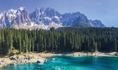 Wir laden Sie ein, diesen zauberhaften Alpensee in der Region Südtirol, Italien, zu entdecken. Der Karersee, auch als Lago di Carezza bekannt, liegt in den Dolomiten und gehört zur Provinz Bozen.