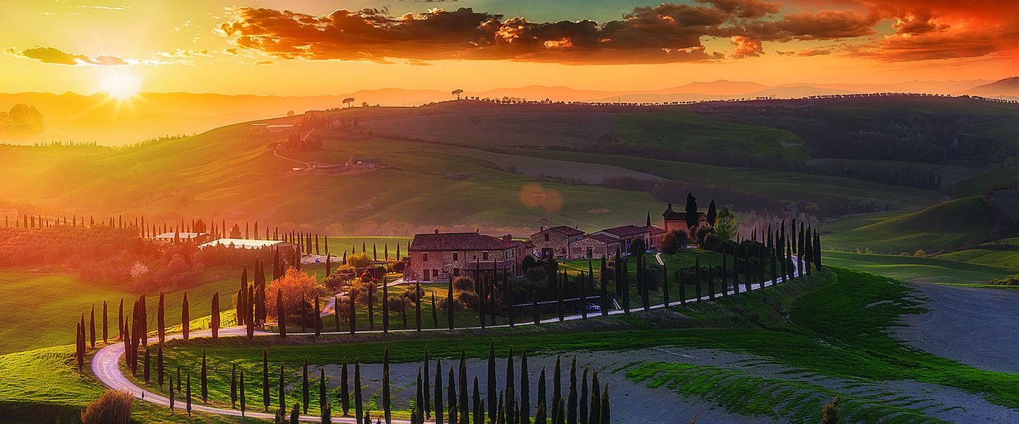 Erleben Sie den kulturellen Reichtum in weltbekannten Städten wie Siena, Pisa oder Lucca mit ihren antiken, mittelalterlichen und neuzeitlichen Schätzen. Genießen Sie das "La Dolce Vita" und erfreuen Sie sich an wunderschönen Hügellandschaften mit ihren Weingütern.