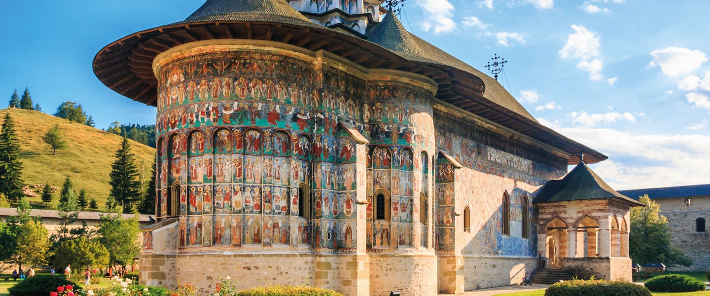 Die Bukovina, bekannt für ihre atemberaubende Naturlandschaft, ist die Wiege der rumänischen Orthodoxie. Sie besuchen die berühmten bemalten Klosterkirchen von Moldovita, Sucevita und Voronet, die mit lebhaften Fresken geschmückt sind. Diese Fresken bieten einen eindrucksvollen Einblick in das Christentum des 16. Jahrhunderts. Am Abend kehren Sie nach Gura Humorului zurück, wo Sie zu Abend essen und übernachten.