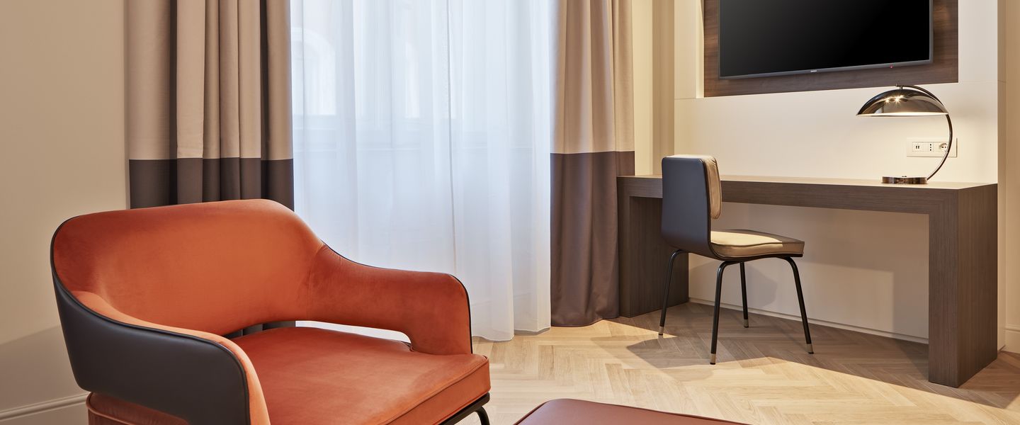 Das DoubleTree by Hilton Trieste ist ein elegantes 4-Sterne-Hotel, das sich im Zentrum von Triest, Italien, befindet. Es besticht durch zahlreiche Originalfresken und Marmordekor. Genießen Sie einen warmen DoubleTree Cookie zur Begrüßung.